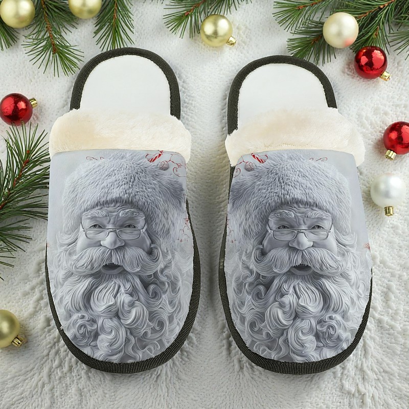 Men's Vintage Santa Claus Slippers - Warm Plush Lined Indoor Shoes with Classic Christmas Print, Cozy Winter Footwear for Home and Holiday Gifts