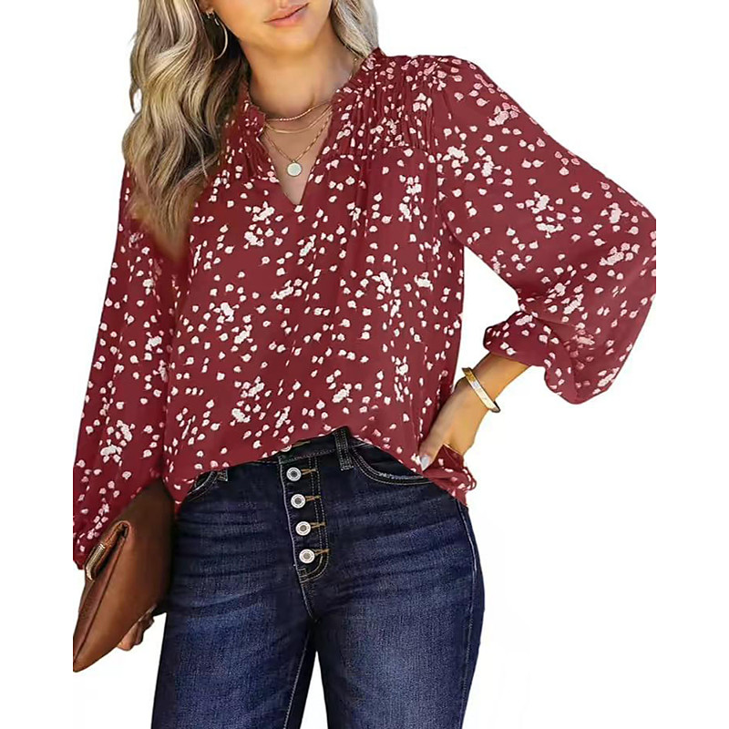 Women's Blouse Polka Dot Vintage Stylish Long Sleeve V Neck Regular Tops Work Daily Holiday Ruched Print Black White Yellow Wine Blue Spring Fall Winter