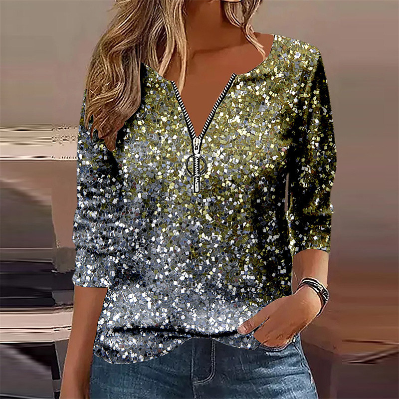 Women's Pullover Sweatshirt Zip Up Sweatshirts Graphic Polka Dot Plain Elegant Warm Fashion Long Sleeve V Neck Regular Tops Home Work Street Sequins Patchwork Quarter Zip Blue Silver Light Blue