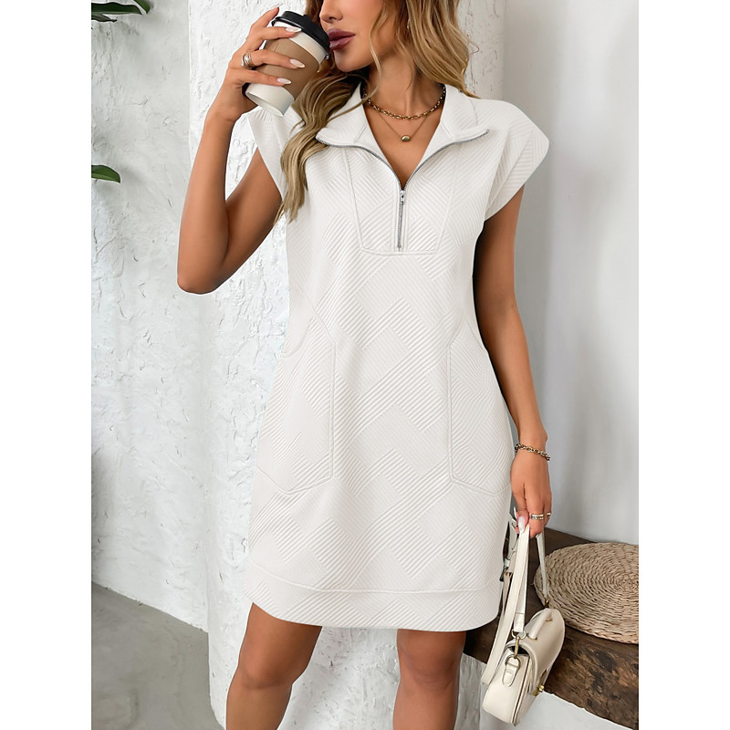 Women's Mini Dress Shift Dress Casual Daily Regular Fit Plain Short Sleeve Lapel Black White Pink Navy Blue Summer Spring
