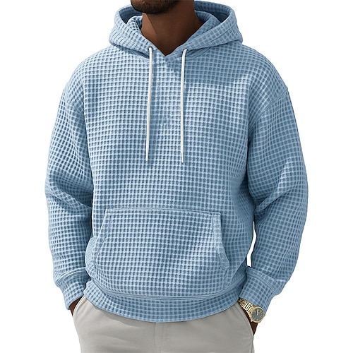 Per uomo Felpa con cappuccio Felpa con cappuccio a nido d'ape Maglione Nero Bianco Verde chiaro Rosa Blu marino Con Cappuccio Semplice Tasca a marsupio Testurizzato Casuale Quotidiano Sport Outdoor