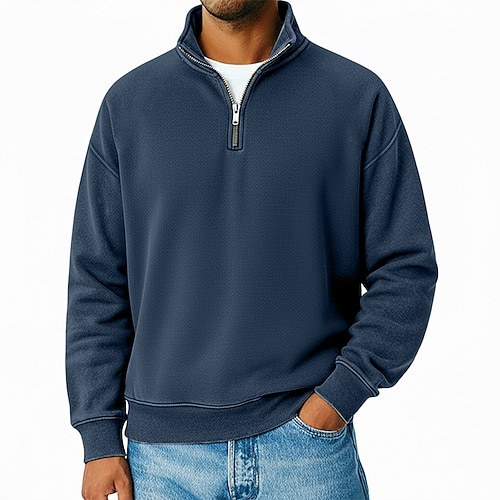 Per uomo Maglia Felpa in pile Maglione Felpa con zip corta Nero Bianco Verde militare Blu marino Cammello Colletto Mao Semplice Tasca a marsupio Sport Outdoor Casuale Quotidiano Streetwear Cool