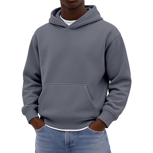 Per uomo Felpa con cappuccio Blu Nero Verde Cachi Grigio chiaro Con Cappuccio Semplice Tasca a marsupio Sport Outdoor Casuale Quotidiano Streetwear Cool Abbigliamento Sportivo Primavera Autunno