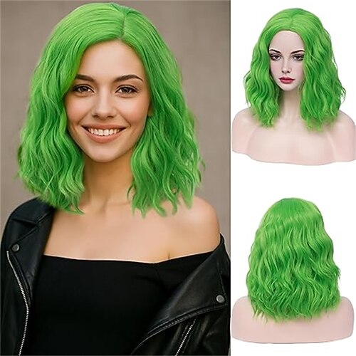Perucconi Bob Corti Verde Scuro con Frangia per Donne Peruccone Mossi Ricci Largos Ombre Spalla Sintetico Cosplay per Ragazze Costumi Colorati Perucconi di San Patrizio Perucconi di Halloween