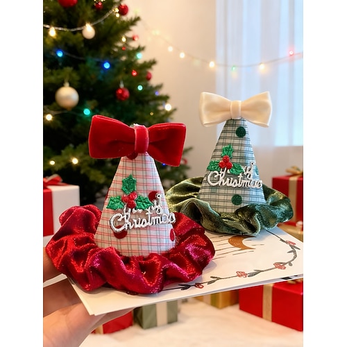 set di fermagli per capelli da donna con cappello per feste di Natale, mini copricapo a forma di albero scozzese con fiocco di velluto e decorazioni di agrifoglio, accessori per capelli festivi per le