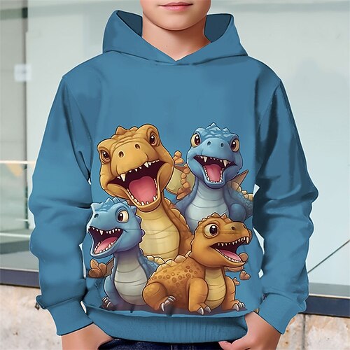 Jungen 3D Dinosaurier Kapuzensweatshirt Langarm Frühling Herbst Mode Streetwear Kinder 4-12 Jahre Mit Kapuze Outdoor Lässig Täglich Normale Passform