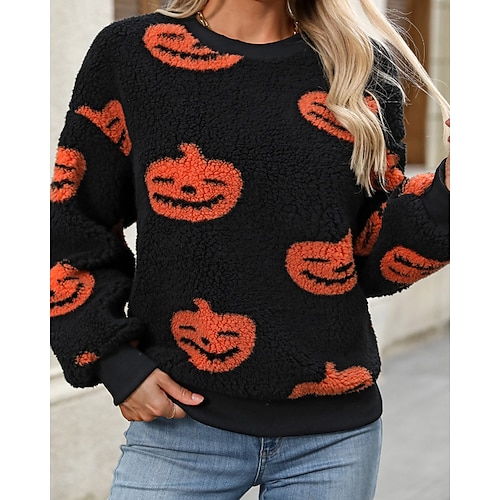 Per donna Felpa Pullover Felpe Zucca Streetwear Casual Manica Lunga Girocollo Top Regolari Ferie Uscire Stampato Nero Arancione Inverno