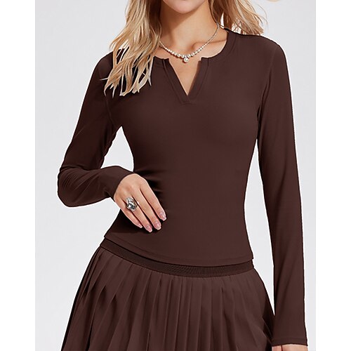 Per donna Tinta unita Maglia da tennis Top sportivo Elegante Elastico Traspirante Golf Pickleball Yoga Scollo a V Top Inverno Nero Bianco Giallo Abbigliamento da tennis