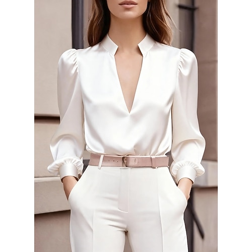 Per donna Camicia Elegant Elegante Raso/Satin Semplice Quotidiano Scollo a V Top Regolari Nero Bianco Rosa Autunno