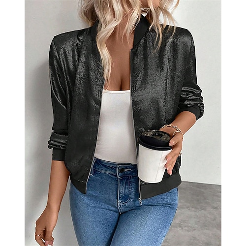 Per donna Cardigan Casual Collo alla coreana Cerniera Manica Lunga Top Regolari Maglia Rosso bordeaux Nero Primavera Autunno