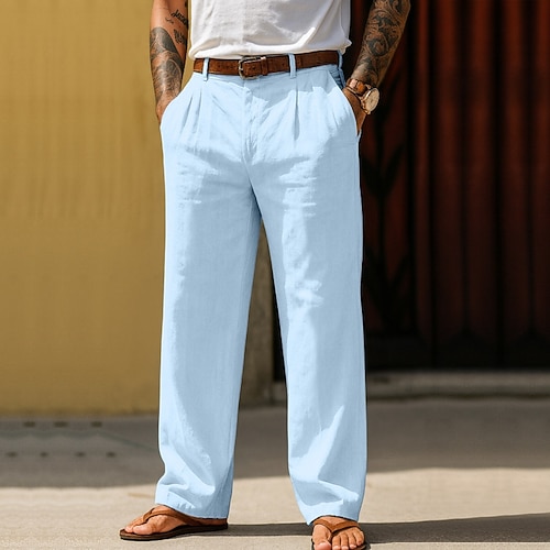 100% lino Per uomo Pantaloni di lino Pantaloni Pantaloni estivi Tasche A cordoncino Vita elastica Liscio Traspirante Comodo Giornaliero Da mare Per uscire Classico Informale Blu marino Grigio chiaro