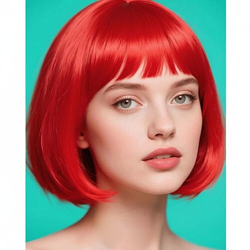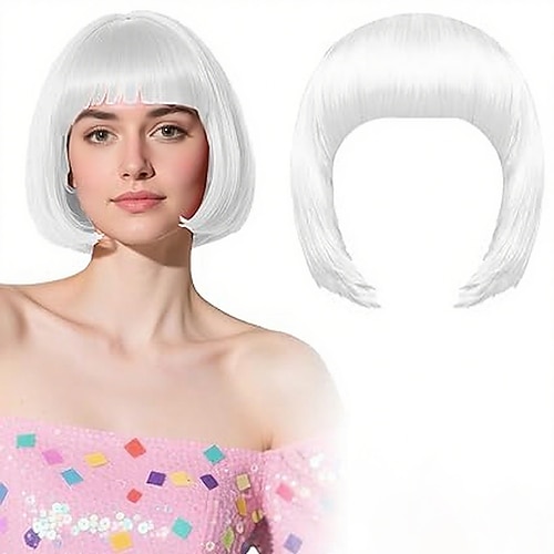 Parrucca di Carnevale Biondo Rosa Rosso Liscio Ciocca Corto Parrucca sintetica da festival Martedì grasso Parata Capelli per costumi da cosplay per Da donna