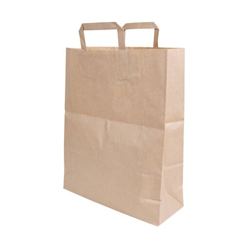 Tragetasche aus Papier, braun, 26 x 17 x 25 cm Flachhenkel innen, 70gr./m² Kraftpapier, 250 Stück