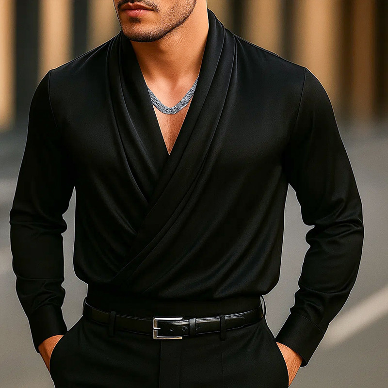 Men's Shirt Silk Like Satin Shirt Casual Shirt Plain Formal Wedding Black Wine Navy Blue Gold Long Sleeve Cowl Neck Spring Fall All Seasons Clothing Apparel Ruched