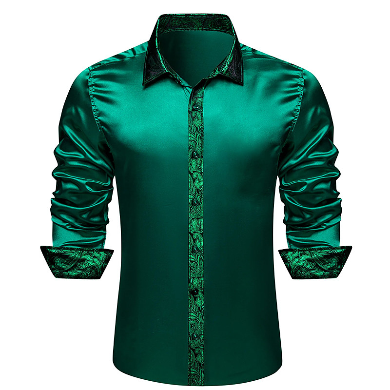 Men's Shirt Silk Like Satin Shirt Casual Shirt Button Up Shirt Prom Shirt Plain Formal Wedding Green Long Sleeve Lapel Spring Fall All Seasons Clothing Apparel Patchwork