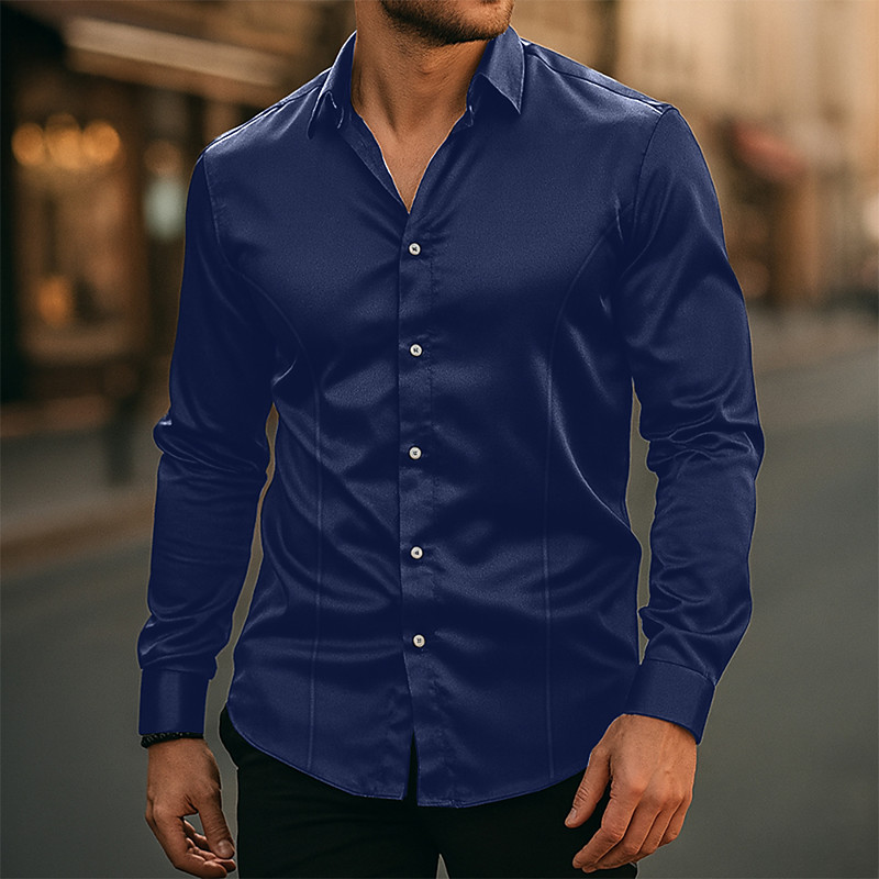 Men's Shirt Silk Like Satin Shirt Casual Shirt Button Up Shirt Plain Formal Wedding Light Blue Black White Wine Long Sleeve Lapel Spring Fall All Seasons Clothing Apparel