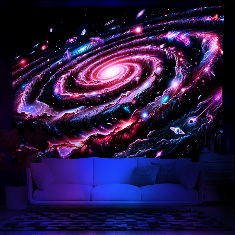 Blacklight Tapestry UV Reactive Glow in the Dark Glow Party Neon Space Universe Nature Psychedelic Trippy Misty Hanging Tapestry Wall Art Mural for Living Room Bedroom