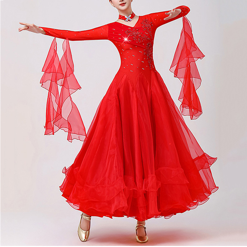 Ballroom Dance Dress Embroidery Splicing Crystals / Rhinestones Women's Performance Party Long Sleeve Mesh Spandex Organza