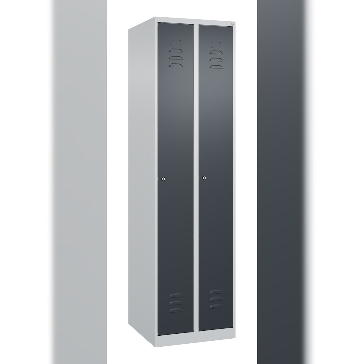 C+P Spind Classic PLUS, 2 Abteile, HxBxT 185x50x50cm, Zylinderschloss, Hellgrau/Anthrazit von PROREGAL