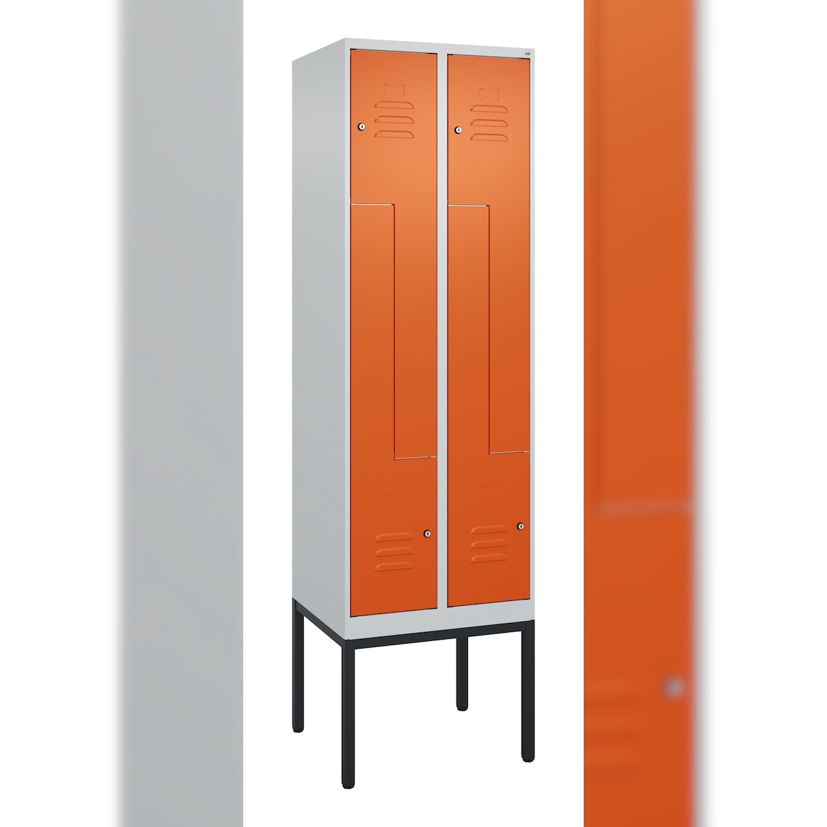 C+P Z-Spind Classic PLUS, Gestell, 4 Abteile, HxBxT 212x60x50cm, Zylinderschloss, Hellgrau/Reinorange von PROREGAL