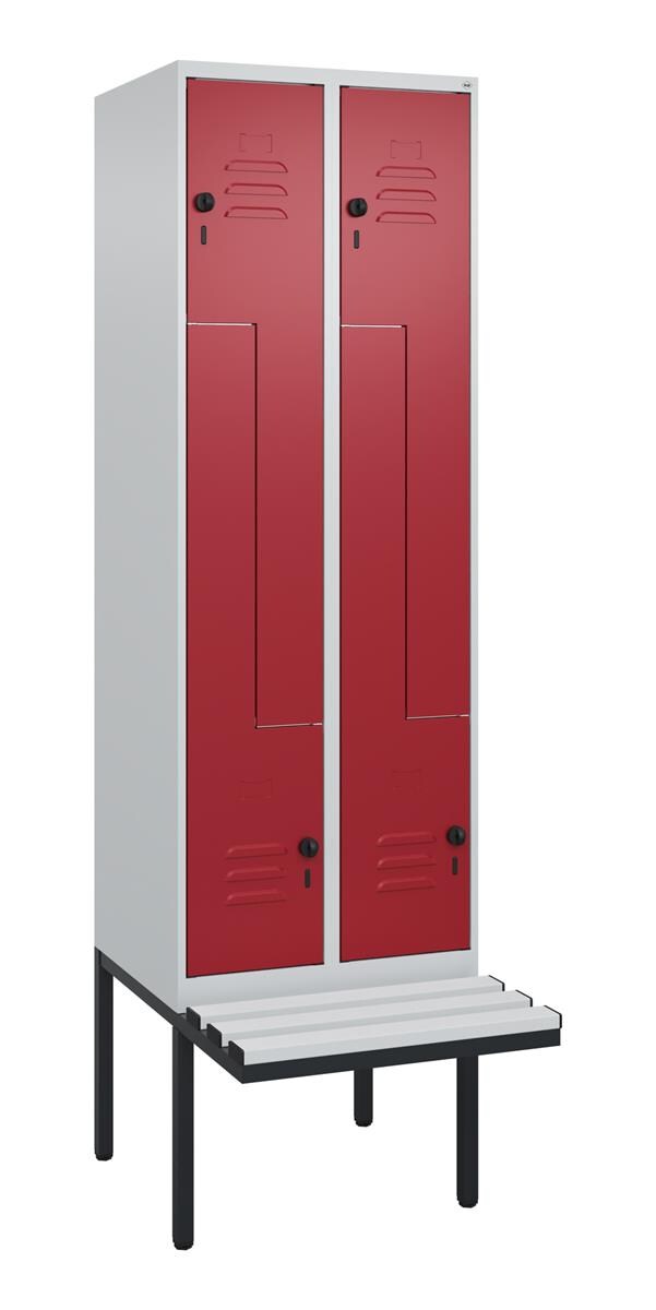 C+P Z-Spind Classic PLUS, Gestell, 2 Abteile, HxBxT 212x30x50cm, Zylinderschloss, Hellgrau/Rubinrot von PROREGAL