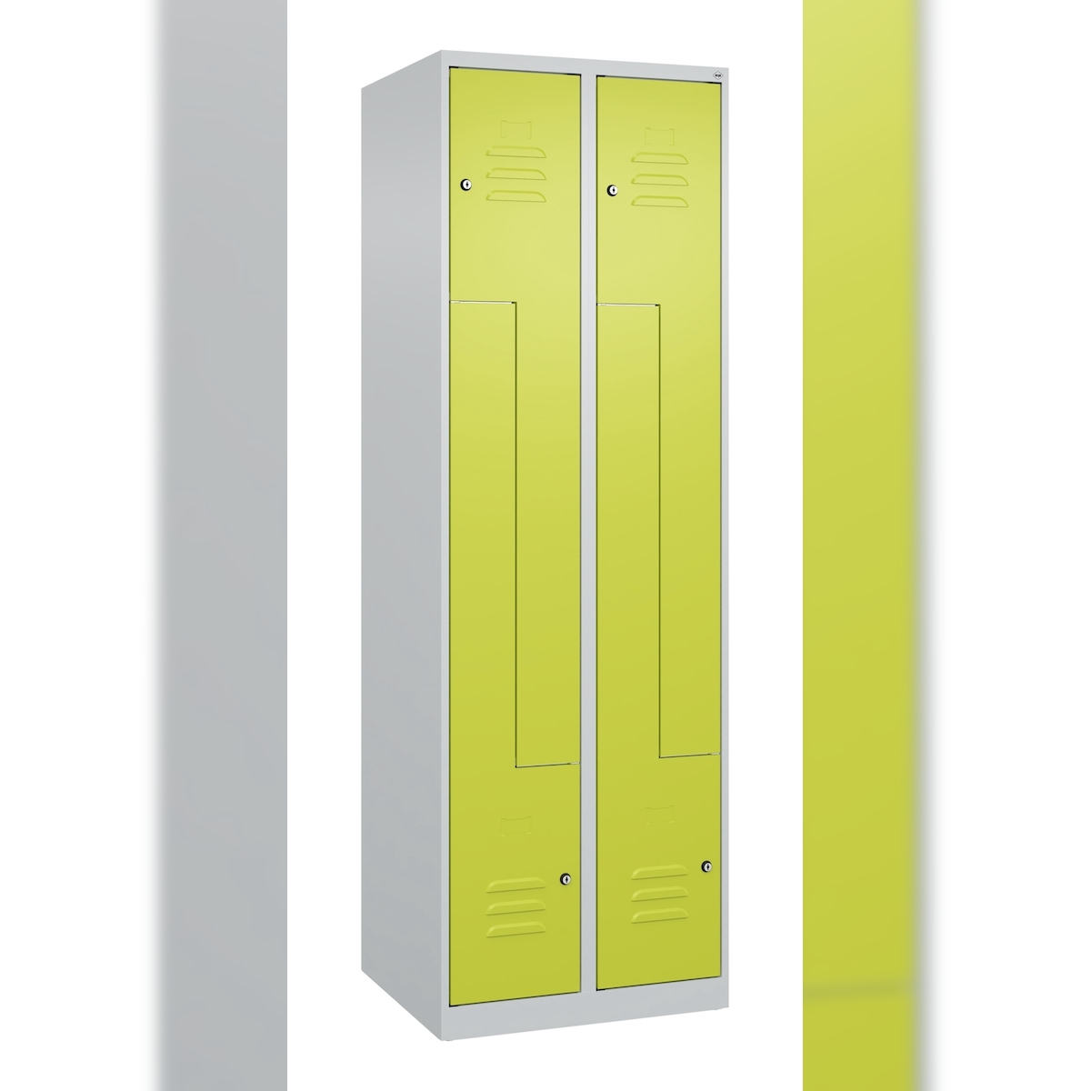 C+P Z-Spind Classic PLUS bodenstehend, 4 Abteile, HxBxT 185x60x50cm, Zylinderschloss, Hellgrau/Clowngrün von PROREGAL
