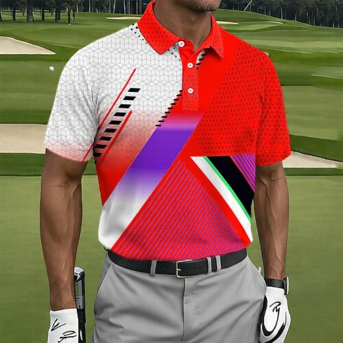 Per uomo Astratto Golf Polo Sportivi Manica Corta Magliette polo Camicie con Colletto Casual Athleisure Bottoni Primavera Estate Blu Rosso Viola