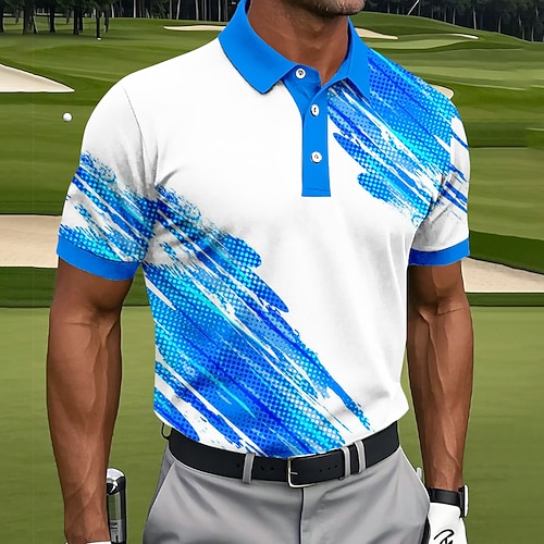 Per uomo Sfumatura Geometrico Polo Polo Sportivi Manica Corta Magliette polo Camicie con Colletto Casual Athleisure Bottoni Estate azzurro cielo Blu Viola