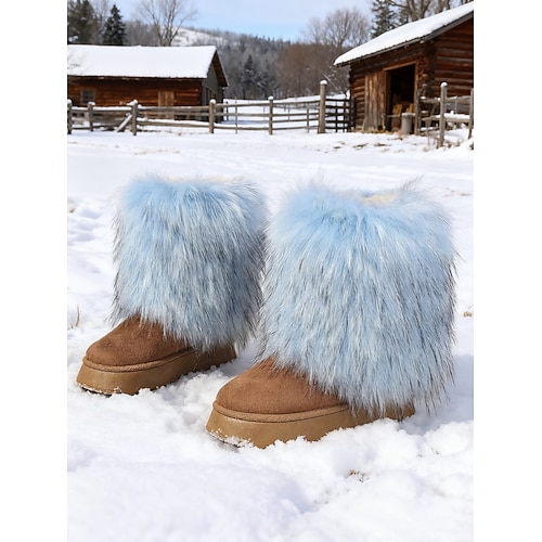 stivali da neve in pelliccia sintetica da donna, caldi stivaletti invernali per interni abbigliamento outdoor, comode scarpe di peluche per Natale, gite sugli sci tempo freddo
