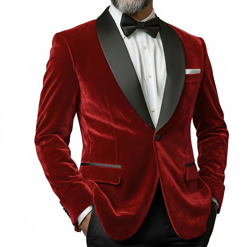 Men's Velvet Blazer Jacket Closure collar Christmas Fashion Party Solid Colored Blazer Red Blue Green Slim Fit Single Breasted Two-buttons