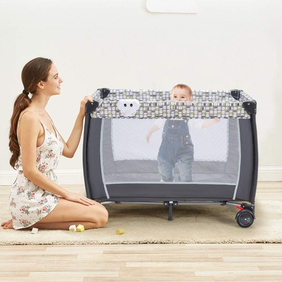 3 in 1 kokoontaitettava matkasänky, hoitopöytä ja leikkikehä irrotettavalla hyttysverkolla