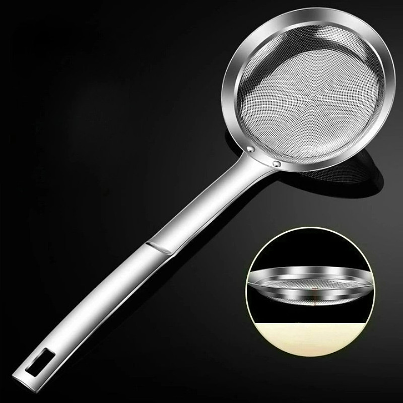 Mesh Stainless Steel Colander Fine Strainer Skimmer Large Kitchen Sieve for Oil Foam Meat Particles Home Cooking Cooking Utensil Durable Food Prep Tool