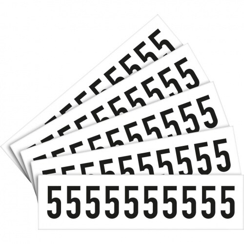 Aufkleber I Ziffer 5, weiß/schwarz, Folie, Schrifthöhe: 60mm, 78x35,7mm, 5 Bogen/VE, 10/Bogen