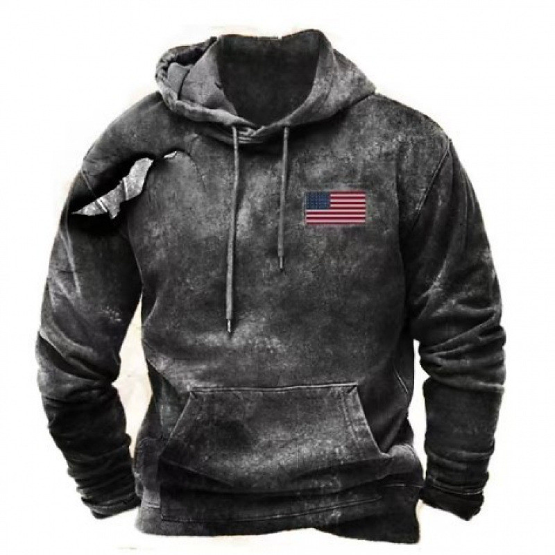Men's Graphic American Flag Hoodie Pullover Hoodie Printed Hoodie Fashion Streetwear Casual Vintage Retro Hooded Outdoor Vacation Going out Dark Blue Dark Gray Gray Drawstring Pocket Print Spring Fall