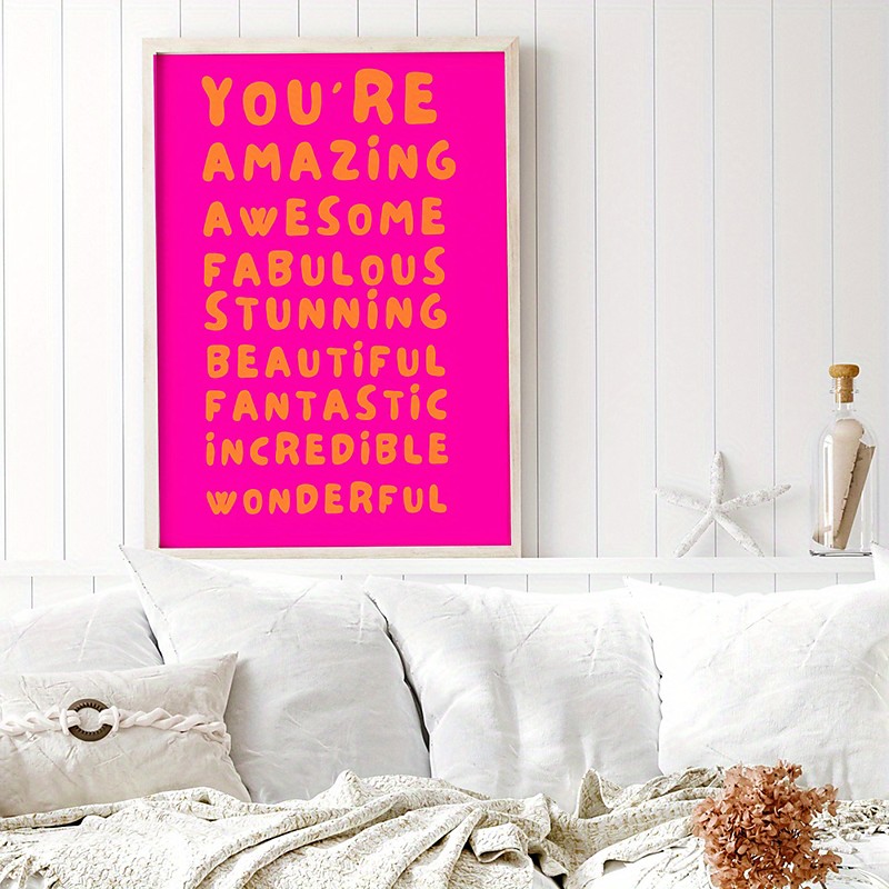 Inspirational Quote Art Posters - Frameless Typography Prints in Art Deco Modern Style Minimalist Pink and Orange You're Amazing Letter Canvas Wall Art Perfect for Classroom Home Office