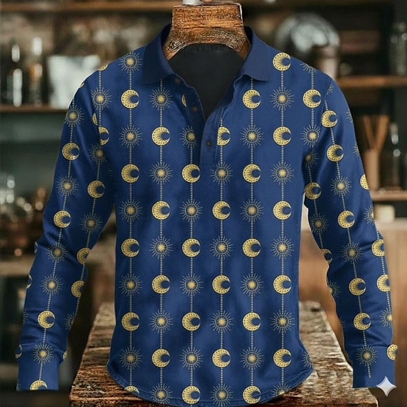 Men's Graphic Polo Long Sleeve Polo Shirts Lapel Casual Outdoor Athleisure Daily Wear 3D Print Buttons Spring Fall Winter Blue Purple Brown