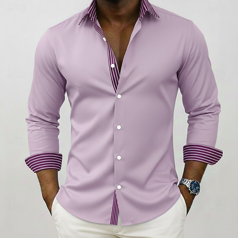 Men's Geometric Striped Shirt Button Up Shirt Casual Dress Shirt Long Sleeve Fashion Casual Outdoor Dailywear Spring Fall Turndown 3D Print Collared Shirts Blue Purple Green