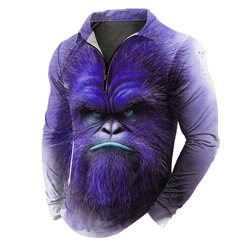 Men's Animal Zip Polo Shirts Long Sleeve Polo Shirts Lapel Casual Outdoor Festival Outfit 3D Print Spring Fall Winter Red Purple Green