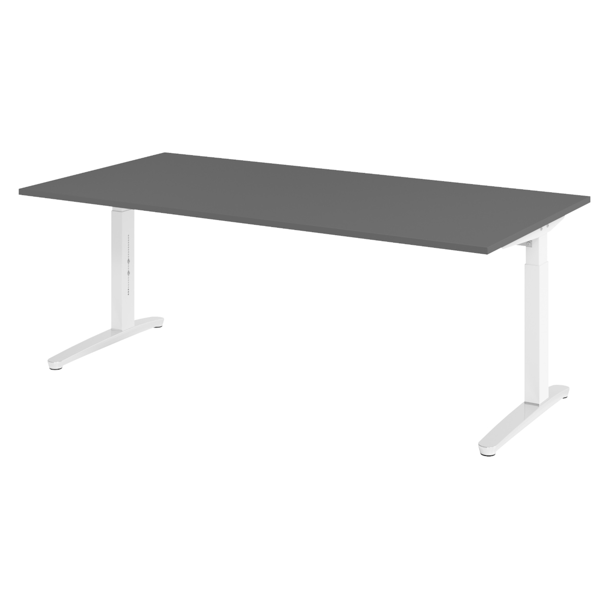 bümö manuell höhenverstellbarer Schreibtisch 200x100 in graphit Gestell in weiß/alu - PC Tisch höhenverstellbar & groß, höhenverstellbarer Tisch