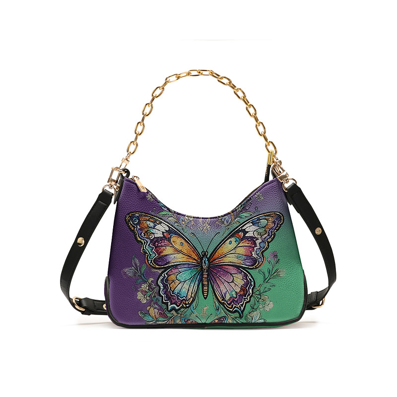 Women's Faux Leather Shoulder Bag with Adjustable Strap, Butterfly Pattern, Multi-Color Options, Versatile Carrying Styles for Casual and Formal Occasions