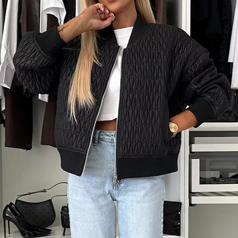 Women's Bomber Jacket Casual Jacket Comfortable Breathable Zipper Pocket Casual Plain Vacation Street Casual Daily Wear Zipper Regular Stand Collar Regular Fit Long Sleeve Outerwear Black White Wine