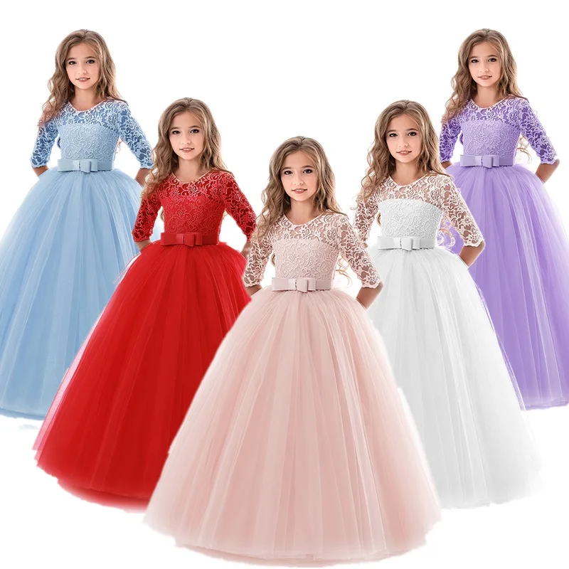 Abito da damigella d'onore bambina Ragazze Abito formale Abiti da sposa Feste Matrimonio Formale Adorabile Principessa Bello Abito per la Prima Comunione Patchwork Rete Tinta unica Manica Lunga