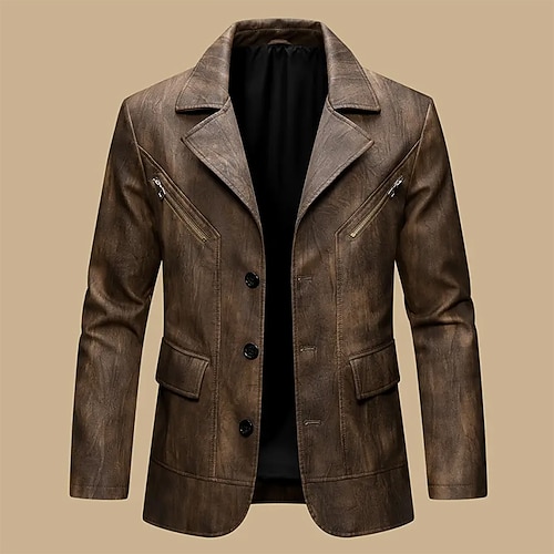 Per uomo Giubbotto Giacca di pelle sintetica Giacca Matrimonio Ricevimento di matrimonio Antivento Caldo Lavoro Abbigliamento da lavoro Rosso bordeaux Nero Blu marino Kaki Giacca
