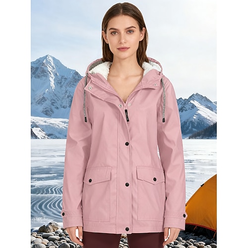giacca antipioggia da donna impermeabile giacca da trekking in pile invernale all'aperto caldo impermeabile pile antivento parka con cappuccio tuta sportiva giacca a vento trench top zip intera sci pesca casual