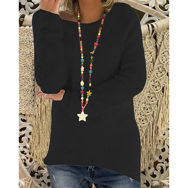 Women's Blouse Solid Color Stylish Casual Long Sleeve Crew Neck Regular Tops Daily Patchwork Black Pink Fuchsia Gray Spring Fall Winter