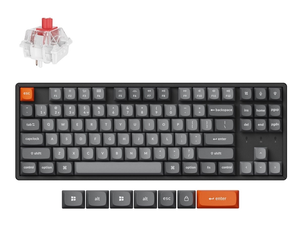 Keychron K8 MAX - Näppäimistö - QMK , mekaaninen - 80% - TKL - taustavalaistu - langaton - USB-C, Bluetooth 5.1, 2.4 GHz - QWERTY - Nordic - näppäinkytkin: Keychron Super Red