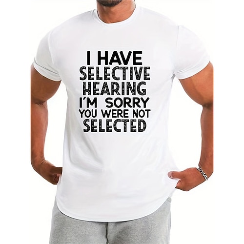 T-shirt grafica a maniche corte divertente da uomo Udito selettivo 'Non selezionato' Gioco di parole umoristico