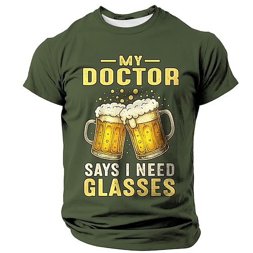 T-shirt grafica divertente da uomo Il mio dottore dice che ho bisogno di occhiali battuta sulla birra maniche corte