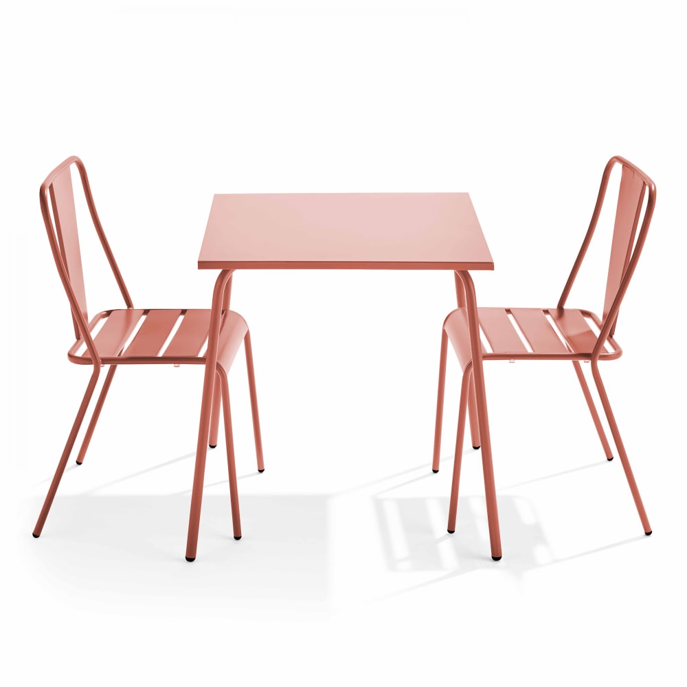 Tavolo da giardino quadrato e 2 sedie in acciaio Rosa