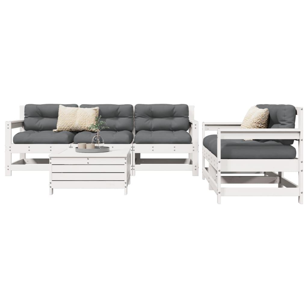 Loungesæt til haven 7 dele massivt fyrretræ hvid